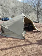 NEW 設営完了😄夕方〜夜は風弱まる予報🌪️⤴️私が予約したエリア、受け付け時は完ソロ予定でしたがいつの間にか4区画🈵になりました💦他、1番上のエリアは2区画空き、下のエリアは全区画空きみたいです💦にしても今日は寒い🌬️🥶