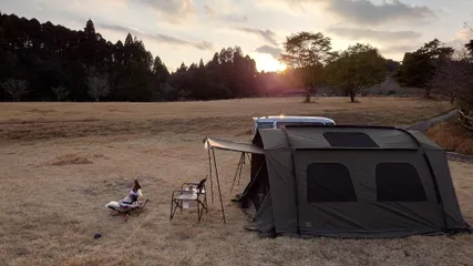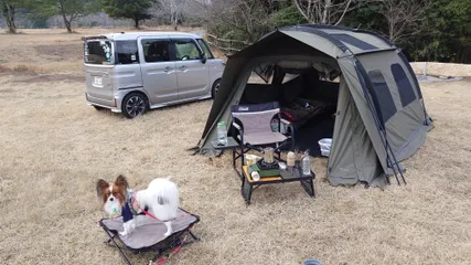 久しぶりのキャンプ 2025/6/18〜19霧島市の黒石岳森林公園キャンプ場 梅雨の合間の真夏日💦この日は、宿泊は私だけ。デイキャンプの方が二組。 目当ての場所にデイキャンプの方々がいらっしゃったので、その方々が帰られるまで車の陰に椅子とテーブルを出しての~んびり😀いい