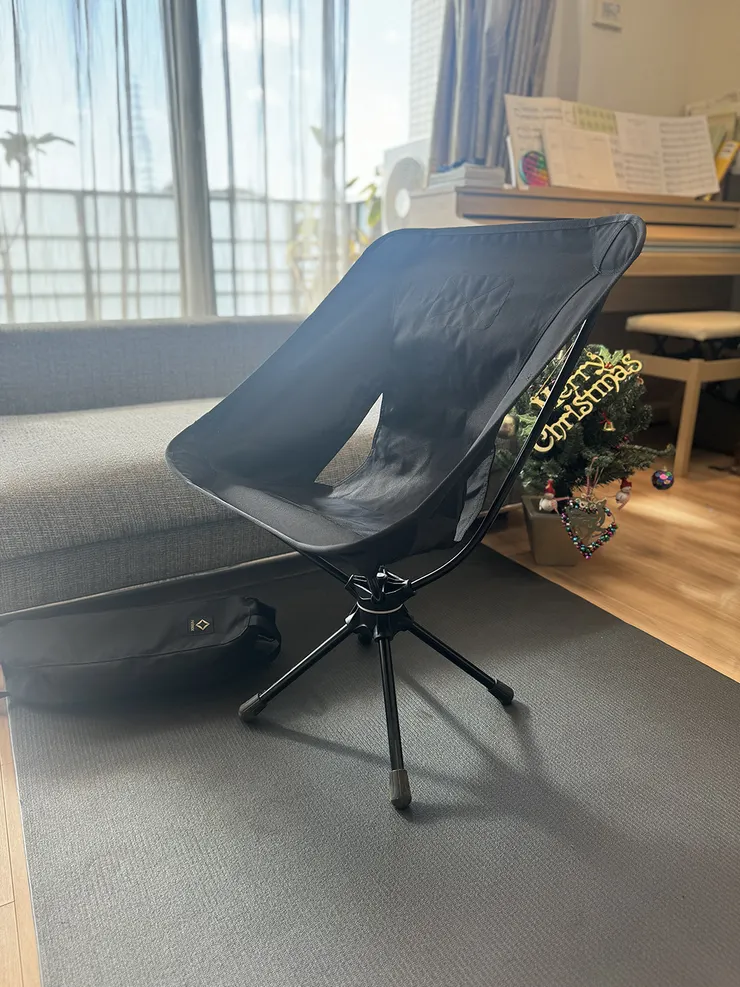 ヘリノックスのチェアワン系のタイプならどれでもイケるサイズ感で、愛用のスウィベルチェアにもジャストフィット。