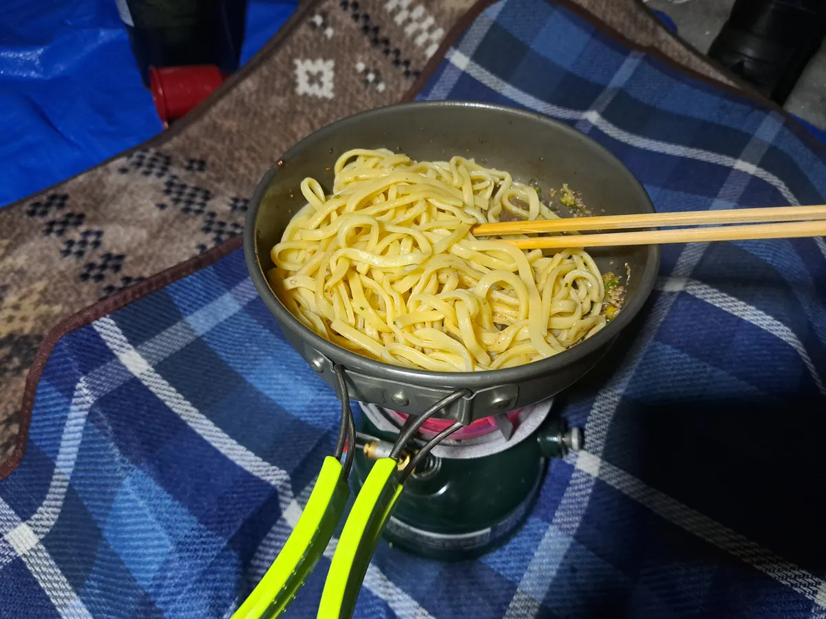 さらにパスタを茹でてペペロンチーノ風にしていただきました🎵