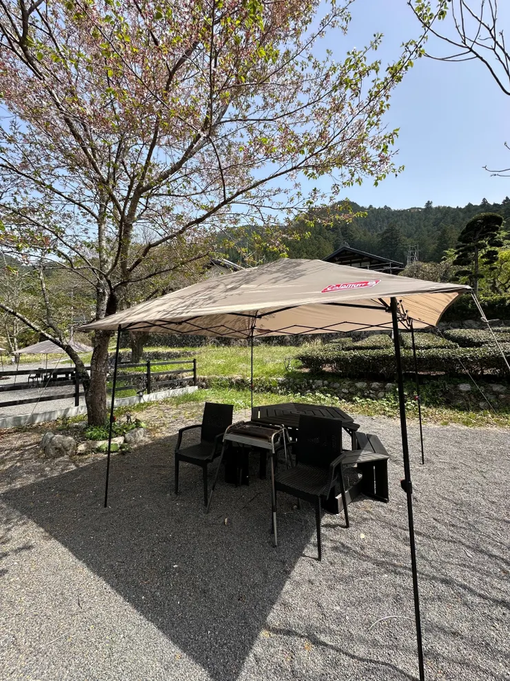 タープ・イス・テーブル・BBQコンロが常設!設営いらずで手軽にBBQを楽しめます。