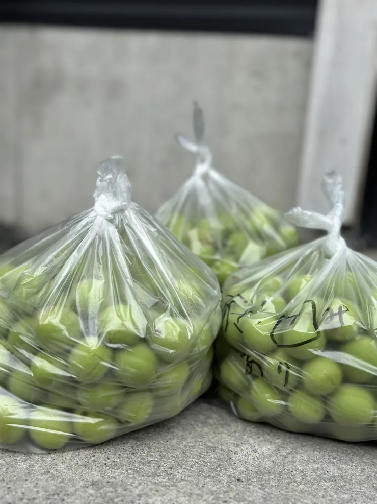 暑い中男性スタッフ達が協力してくれたおかげで、短時間で大量の梅をゲットしたので