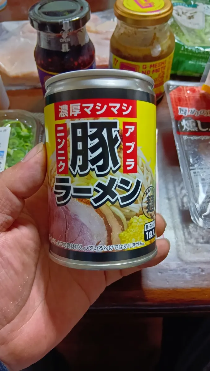 一緒に、クレーンゲームでゲットした景品の缶ラーメンの試食も。