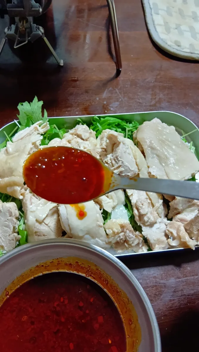 よだれ鶏美味しそう。天才的にタレが本物らしくできましたね🎵