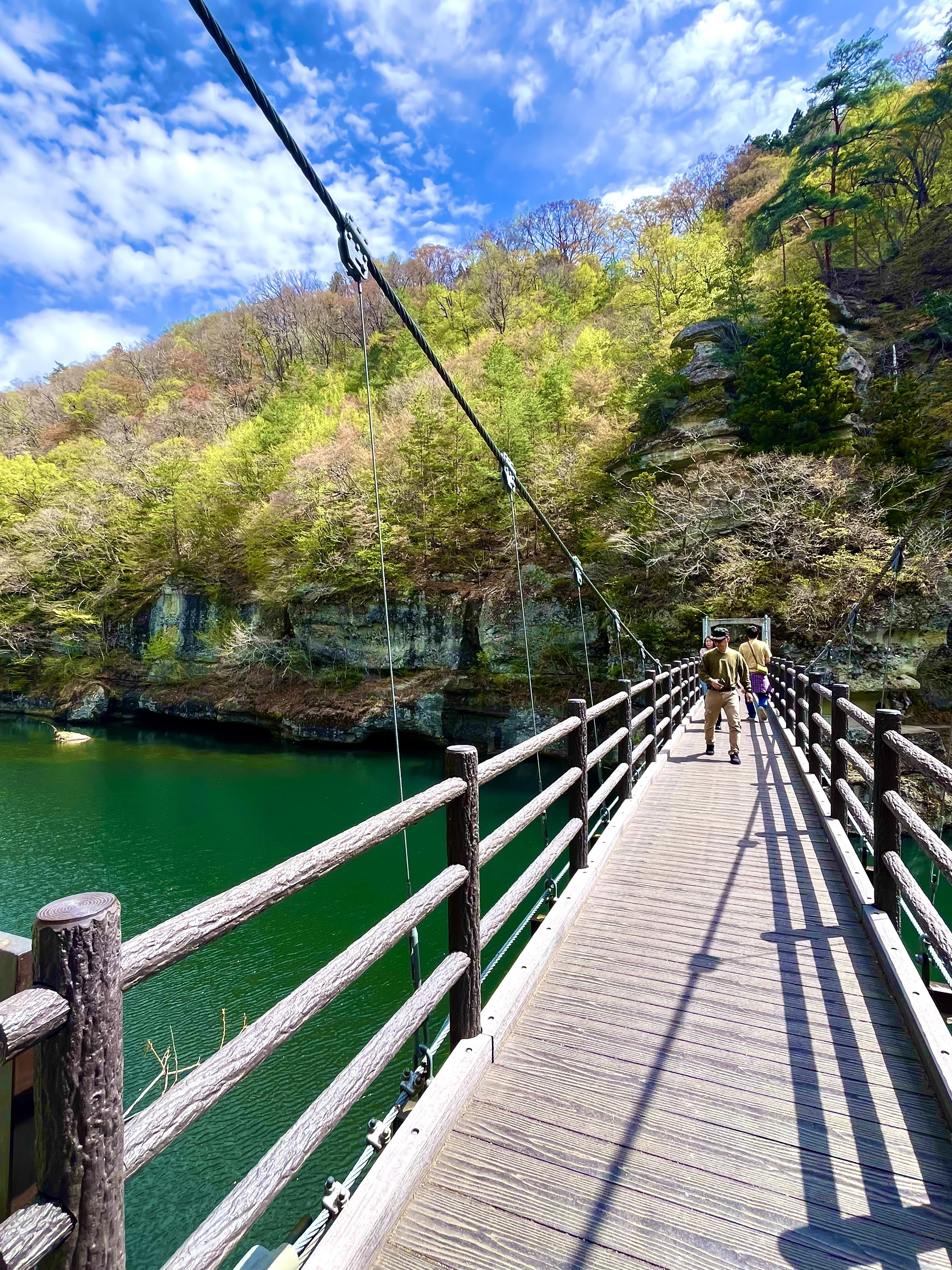 流石名所の吊り橋、きれいですね😃