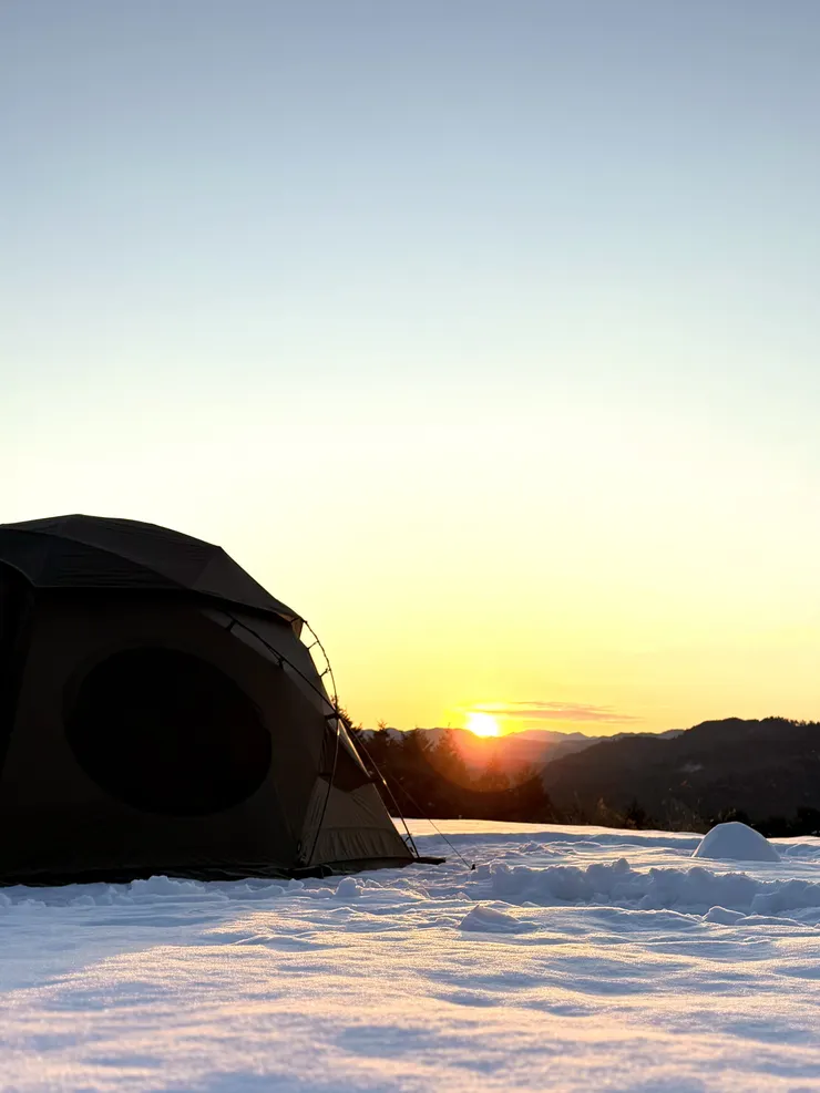 と上がりに上がったテンションは、雪ならしで少し落ち着いてキャンプスタート出来ました😂