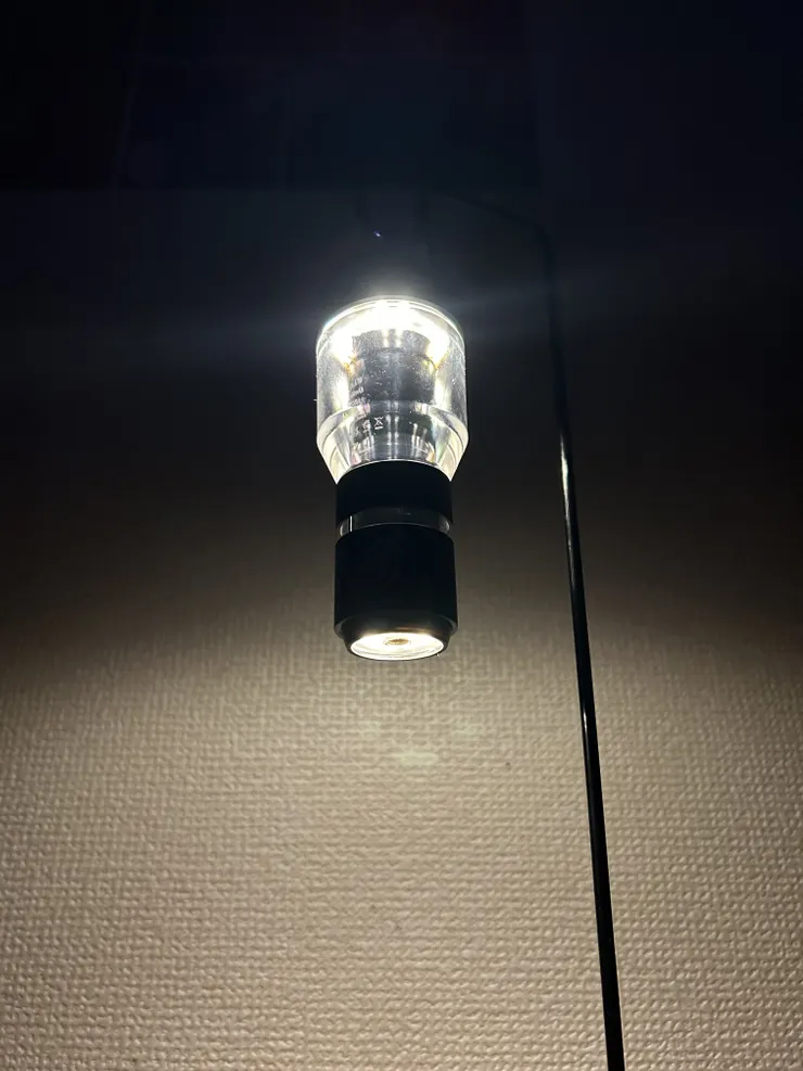 1.0ではランタン照明とスポット照明の同時点灯は出来ず、吊り下げた場合は真下にブラックホールが発生していましたが、この2.0では真下も同時に照らせるのです。(写真参照)