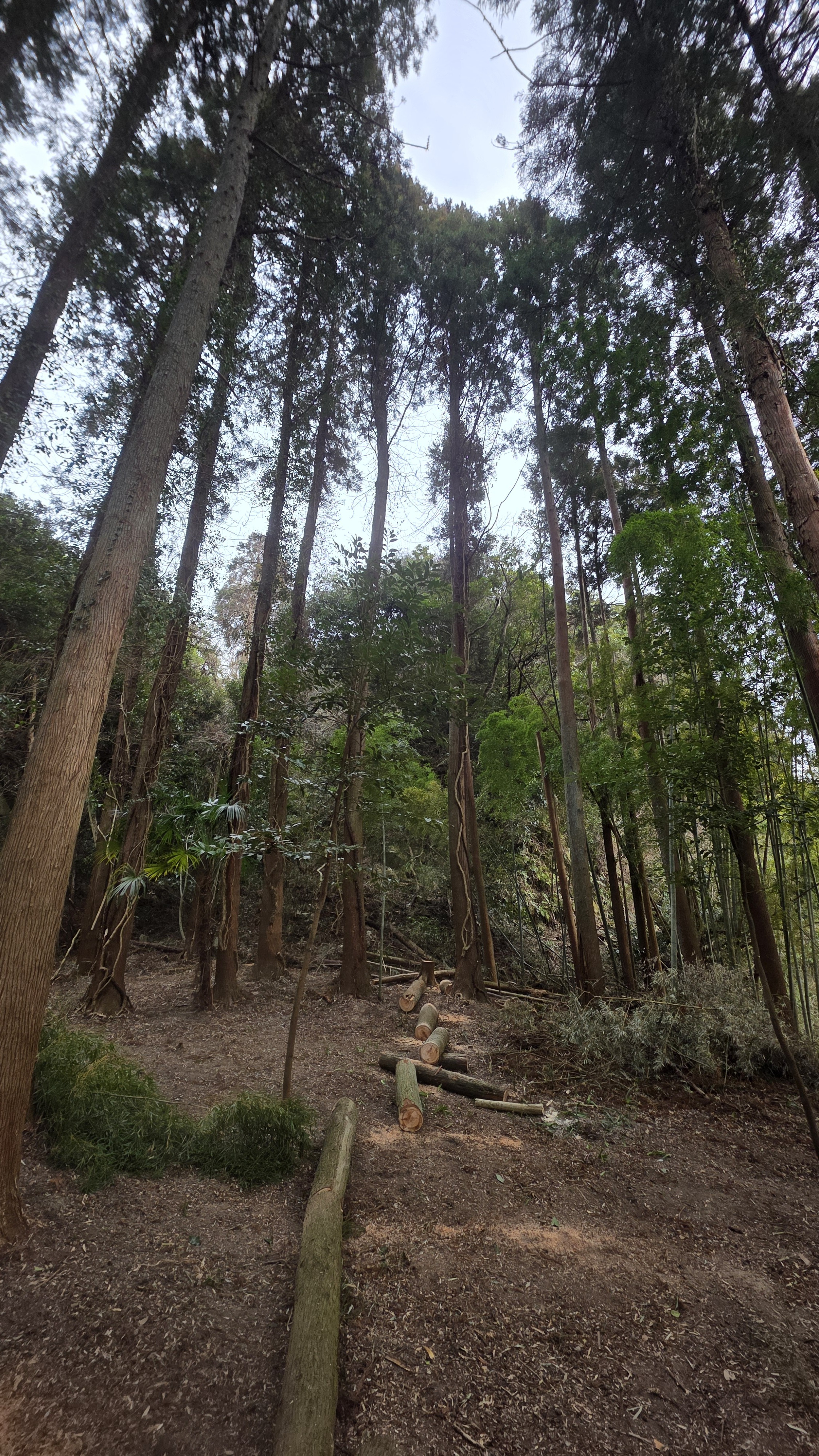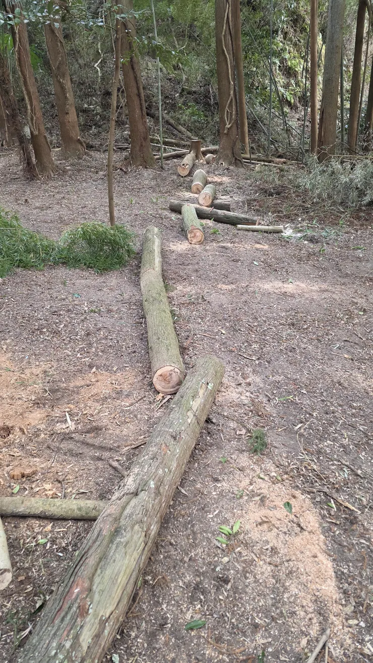 今日は、久々に30m級の斜めに生えていた杉を一本伐採。せっかくなので、何かに再利用するつもりです。