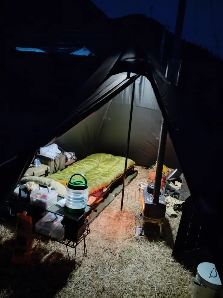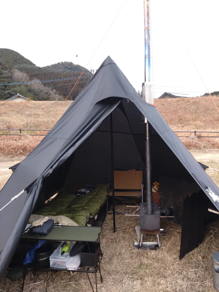 火の粉で3箇所穴も空いてしまったものの、設営、撤収のラクさが上回る👍