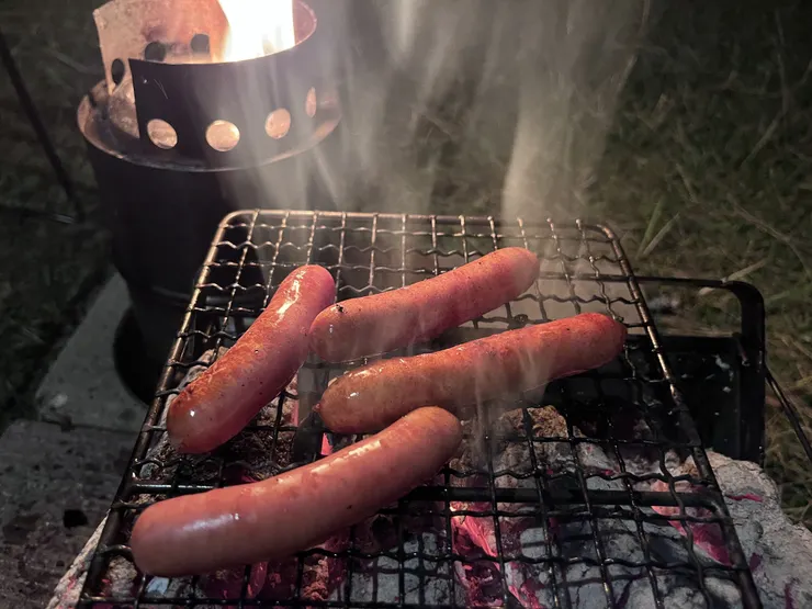 道中にあった道の駅掛川が品揃え豊富だったので、食材もここで揃えました。ソーセージというのはキャンプにおいて扱いやすくてとても優秀な食材ですけど、「転がる」という唯一の弱点さえなければなあ、と思います。
