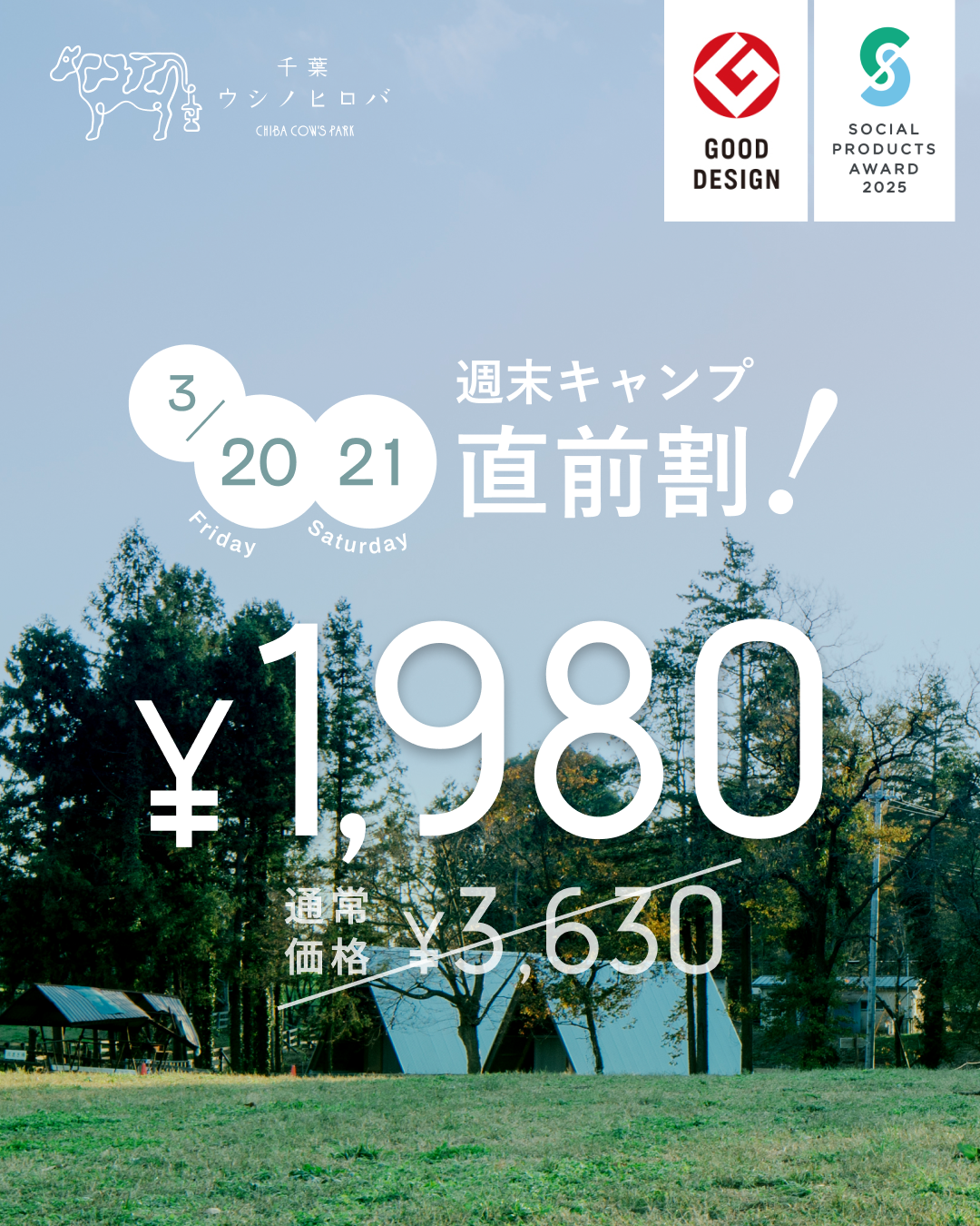📣先着20組! 3/20(金)・3/21(土)直前割 でキャンプがお得に🏕️🐄