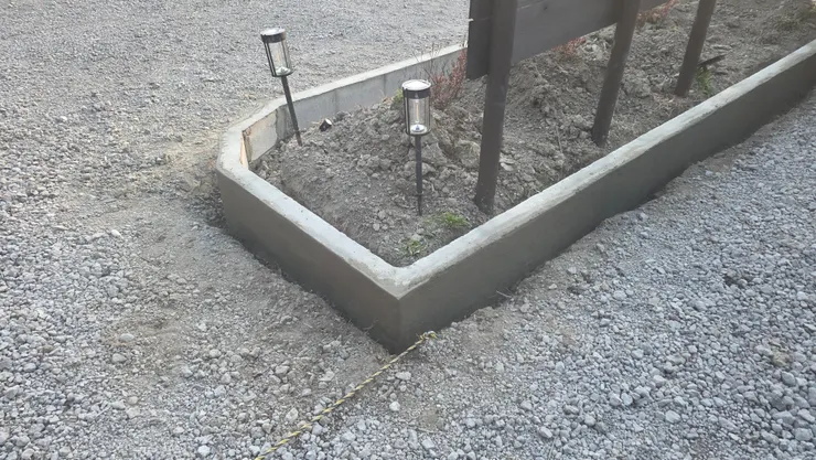 傾斜地に水平でブロックを積むのは難しいですね。3段積んで、ようやくちょうどいい高さになりました。