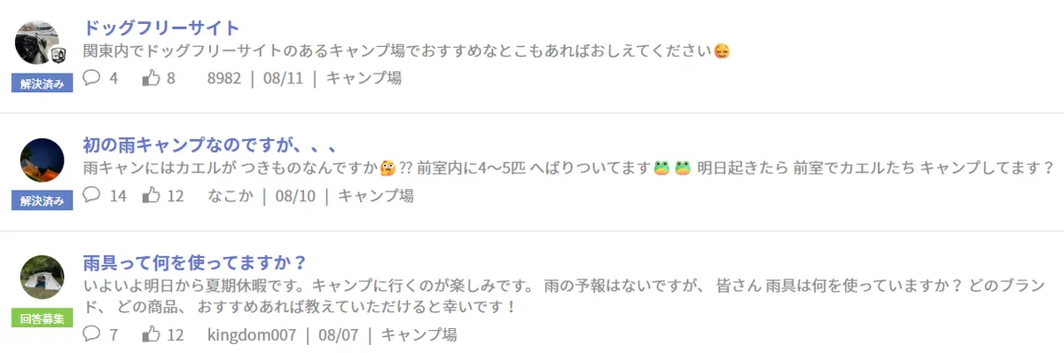 楽しかった体験をシェア、不安なことを相談、とっておきのギアをお披露目、大切なキャンプ体験を日記として活用するなどなど、幅広くお楽しみいただけます。