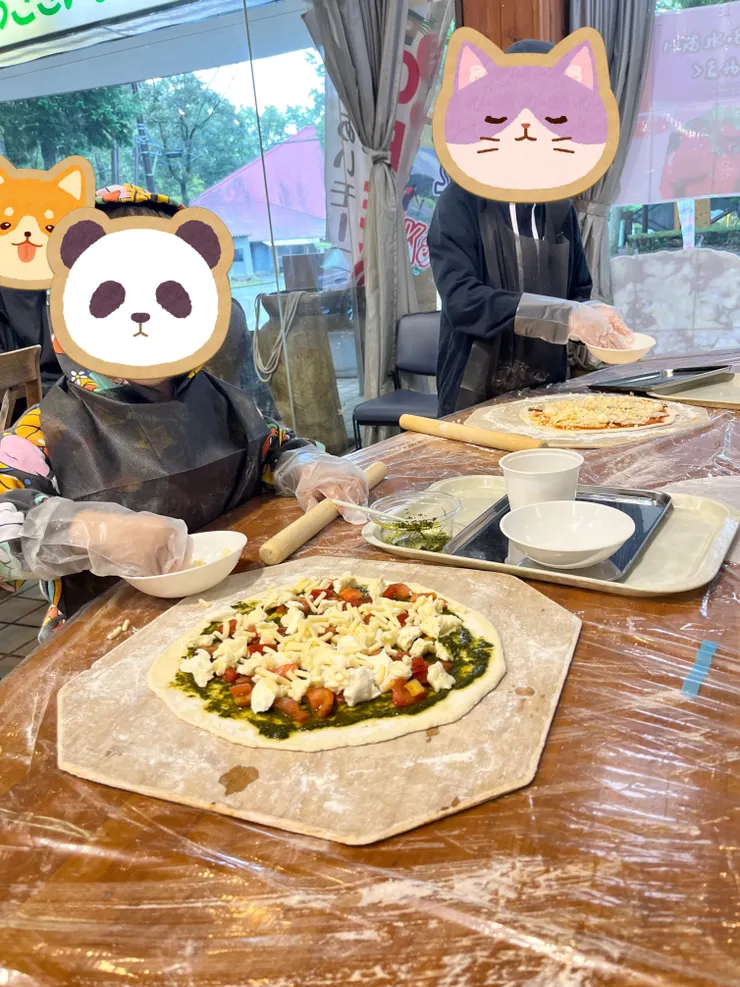 昼にチェックインして、管理棟横のホールでピザ作り体験。焼きたてピザを昼食に。サイドメニューに頼んだポテトフライがめちゃくちゃ美味しかったです🥺✨子供たちが夜に朝にまた食べたい!と言うくらい。このポテトフライを食べる為だけにまた行きたいですw