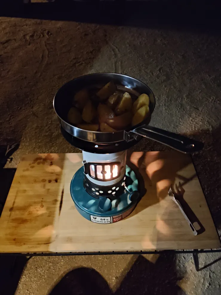 ポテトは甘くて美味い「インカのめざめ」を「料理の楽園」という調味料で炒め。