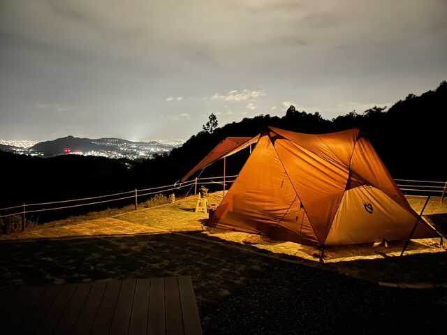 清掃中以外は無人のキャンプ場 福岡市内から車で30~40分程 夜景が見えるオートサイトあり 全区画AC電源付き 無料のピザ釜あり トイレ・シャワーは土足禁で清潔
