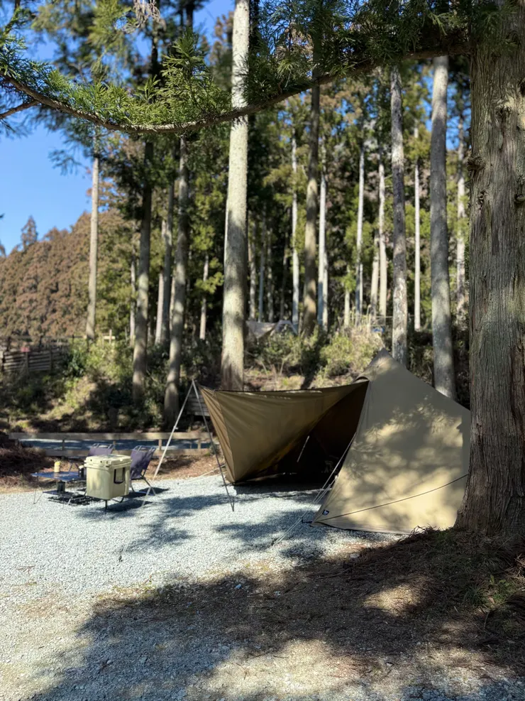 翌朝は雨予報だったものの、木々達に守られた林間サイトで楽々撤収でした🌳🌳🌳