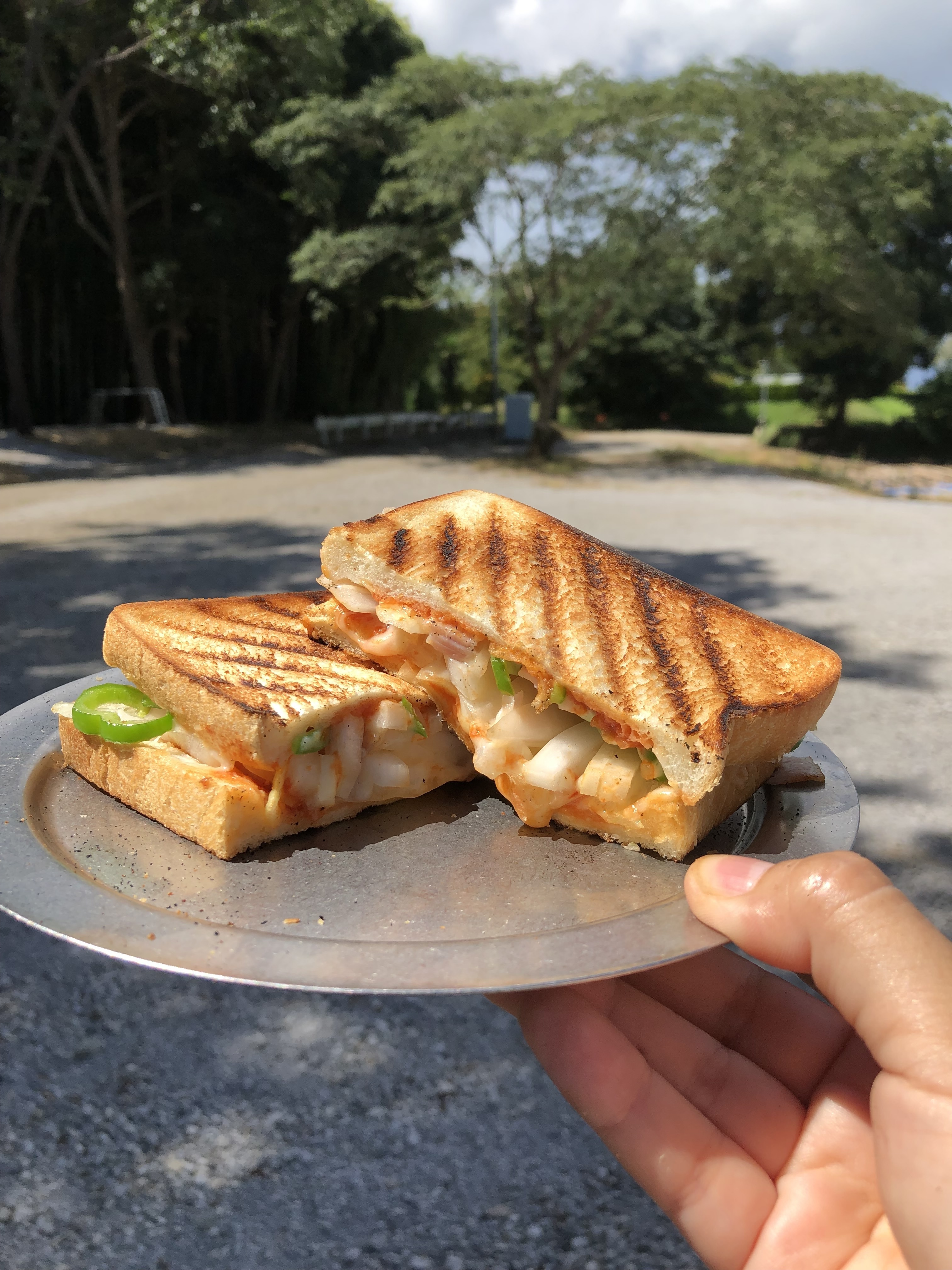 また、ピーマンや玉ねぎといったカット野菜に冷凍小エビ、スライスチーズとケチャップをはさんだ、ピザ風ホットサンドも美味しいですよ!!