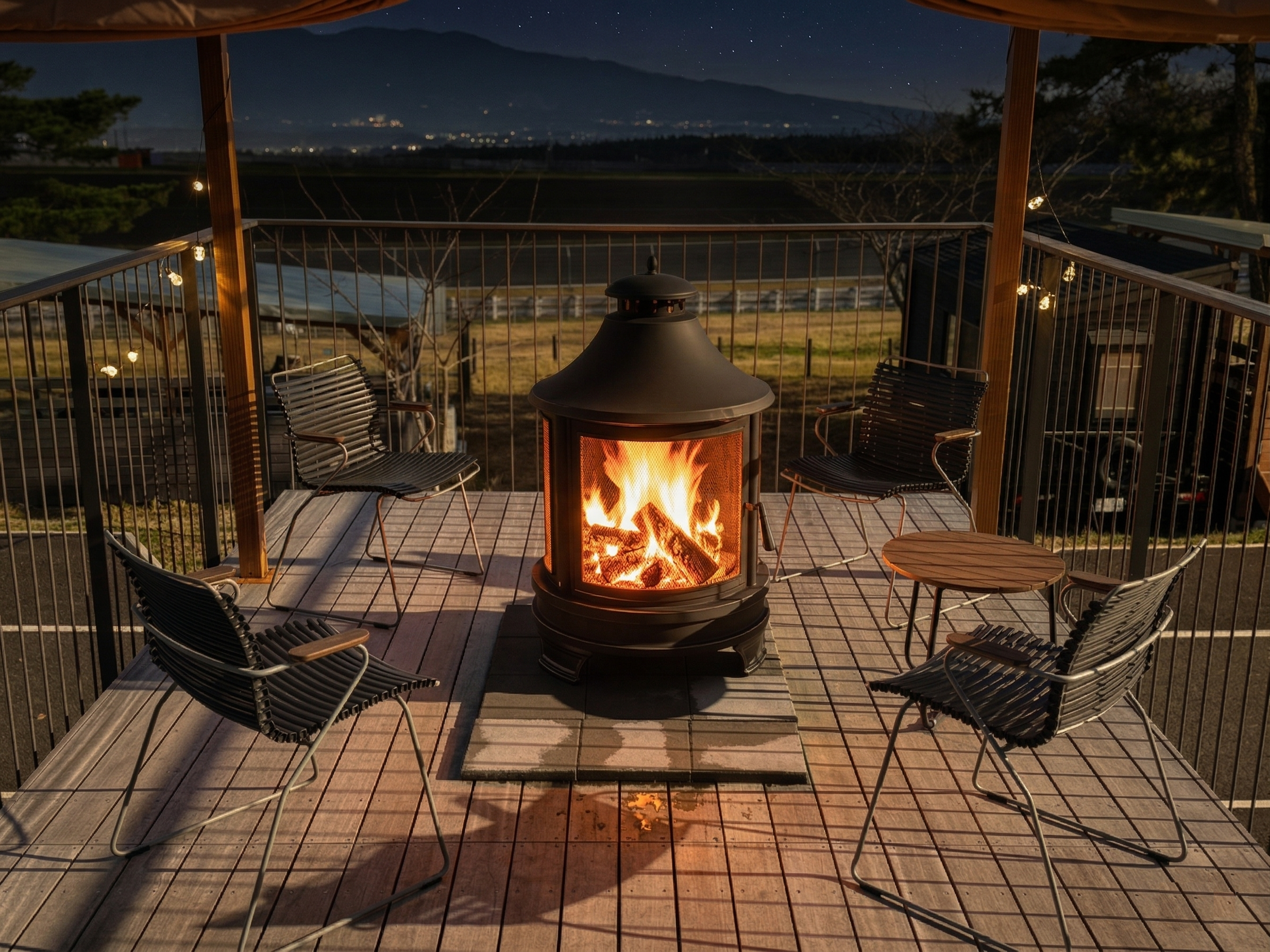 デッキでそのまま焚き火ができるファイヤーピットも新設。 これからは特等席で焚火をお楽しみいただけます🔥