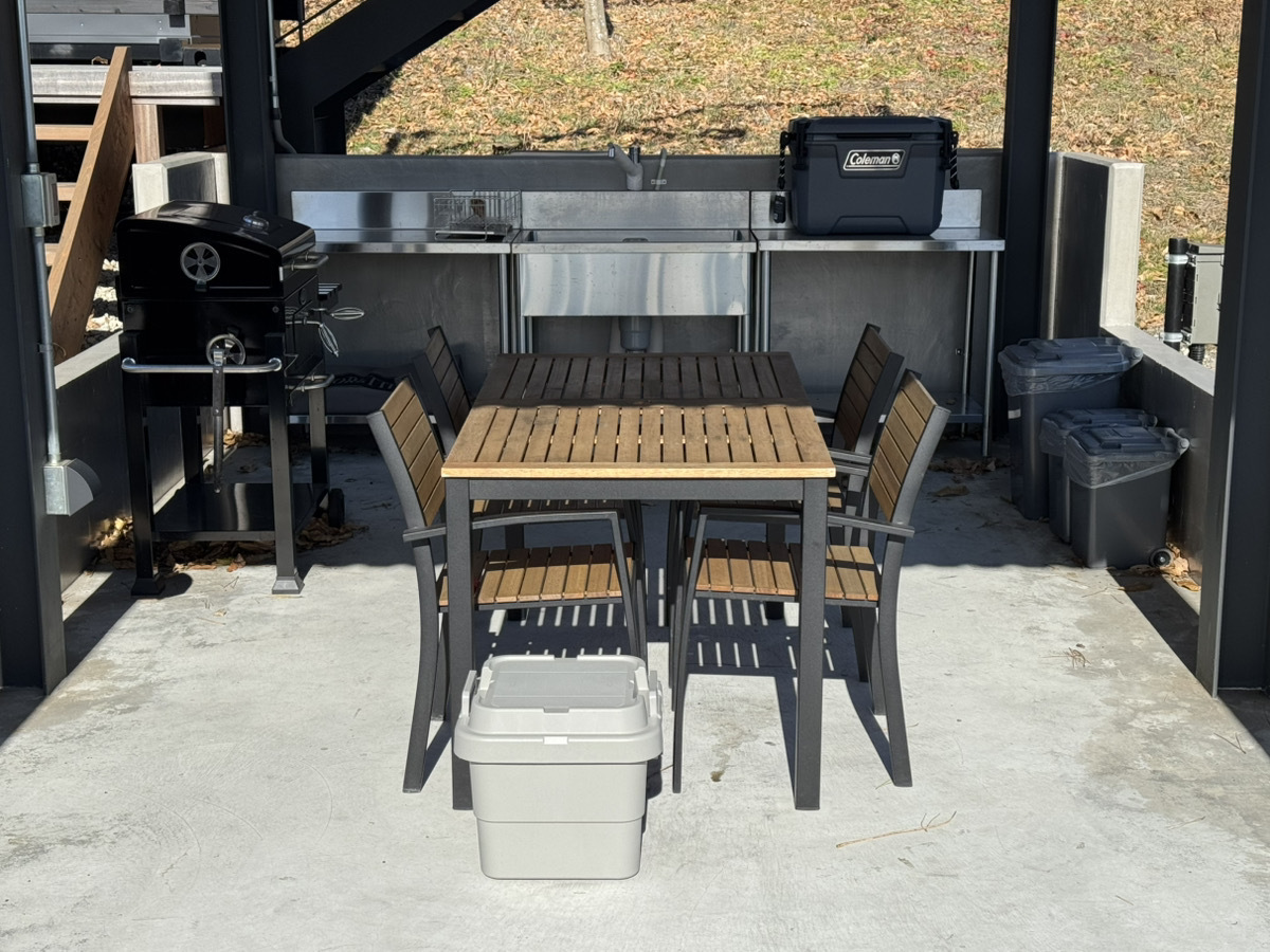 「お湯の出る専用シンク」や「本格チャコールグリル」、建物内にはエアコンも完備🌬️
