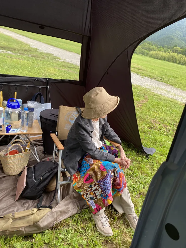 アフリカンプリントの膝掛けが、よく似合っています👍