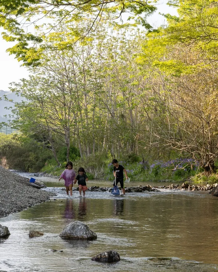 浅いのでお子さまでも安全に川遊びができます♪