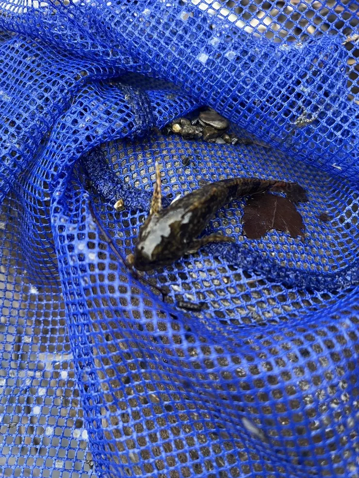 石の裏や落ち葉の下をそっとのぞくと、カワゲラやハグロトンボ、カジカの姿が次々と現れます。