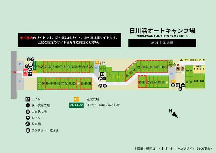 【電源・延長コード】オートキャンプサイト(100㎡)