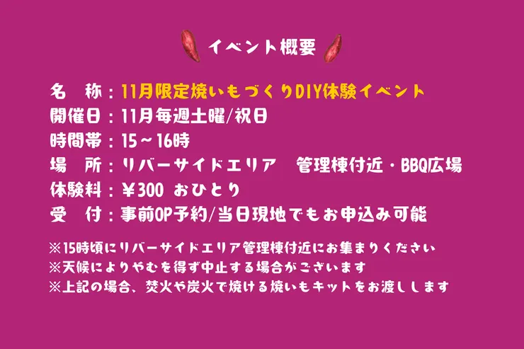 名 称:11月限定焼いもづくりDIY体験イベント