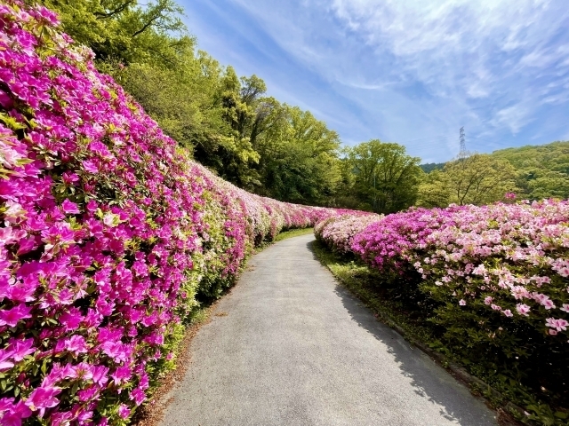 鮮やかなピンクや赤のツツジがモコモコと連なる姿は、通称「つつじロール」と呼ばれ、この時期だけの絶景です。生駒の風を感じながら、お花見ハイキングはいかがでしょうか?