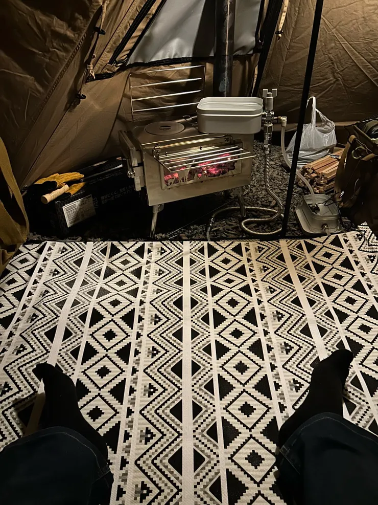 私も実は床には困っていて、空間の空気は暖められても、床からの冷たさは防げないので、グランドシート+防水シート+断熱シート+毛足の長い絨毯で冬キャンプを何とかしのいでいました。ですが、荷物がかさんで毎回重い😣
