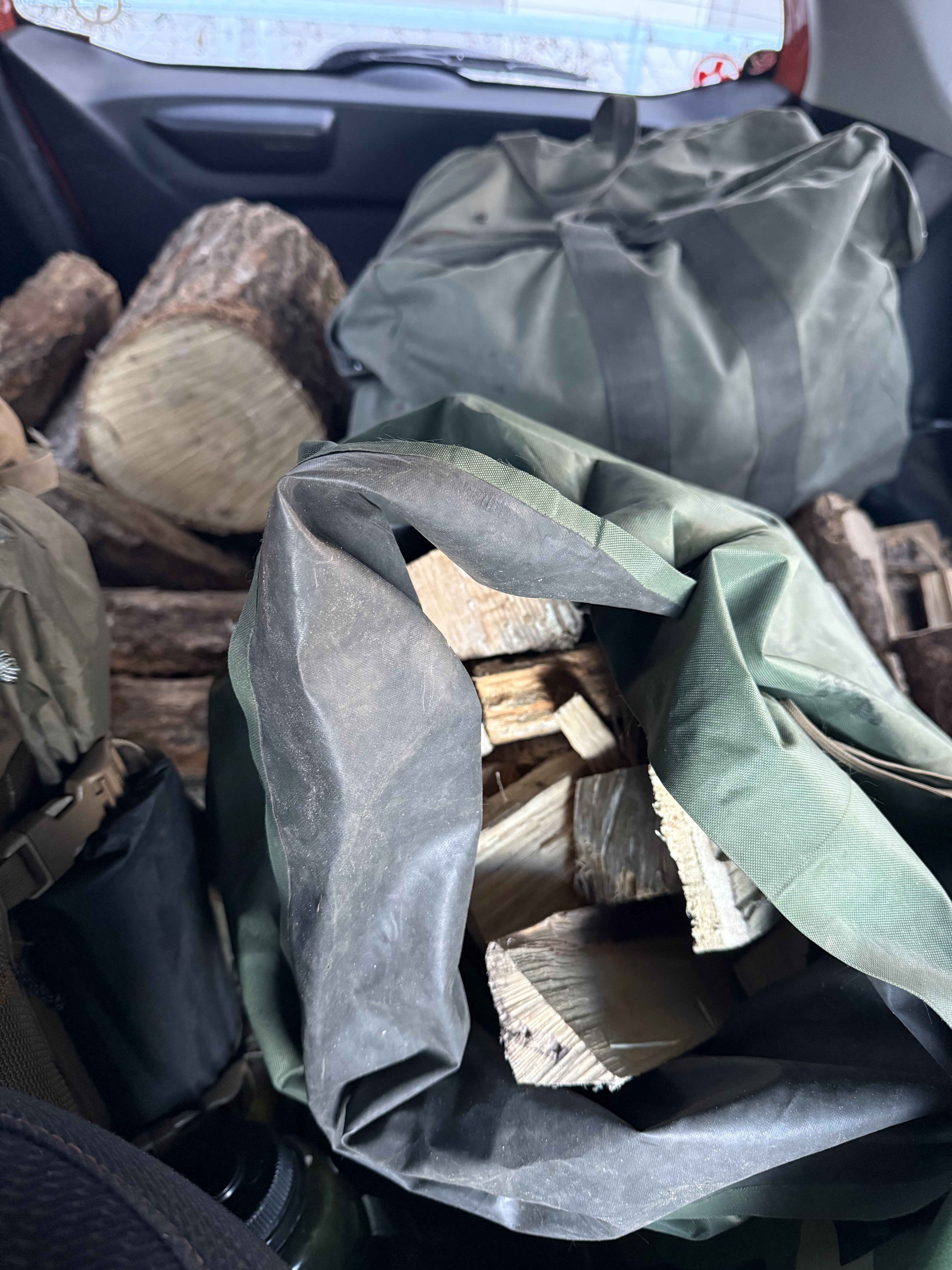 久々にキャンプ行くぞぉ!あれ、薪が少ないから買いに行かなきゃ。→いつもの薪屋さんでたっぷり購入。→わってない短材もあるよ!からの3箱購入。おまけまで貰っちゃって車の中薪でパンパンに。コレで1万か買ってないのバグでしょ。