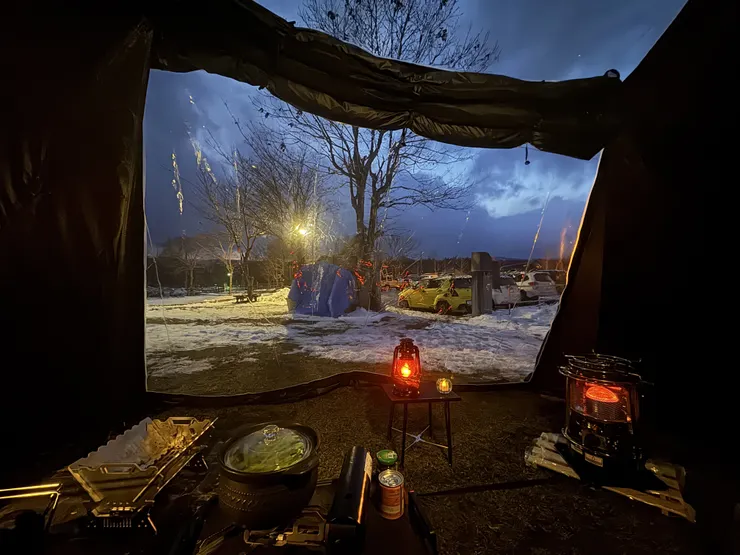 雪が降ったり風が吹いたりで、天候はあまり良くないですが、幕の中は快適ですw