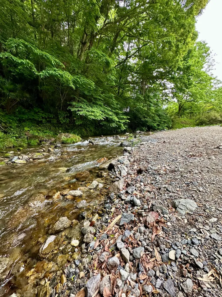初夏のさわやかな陽気の中、場内を流れる名栗川では、