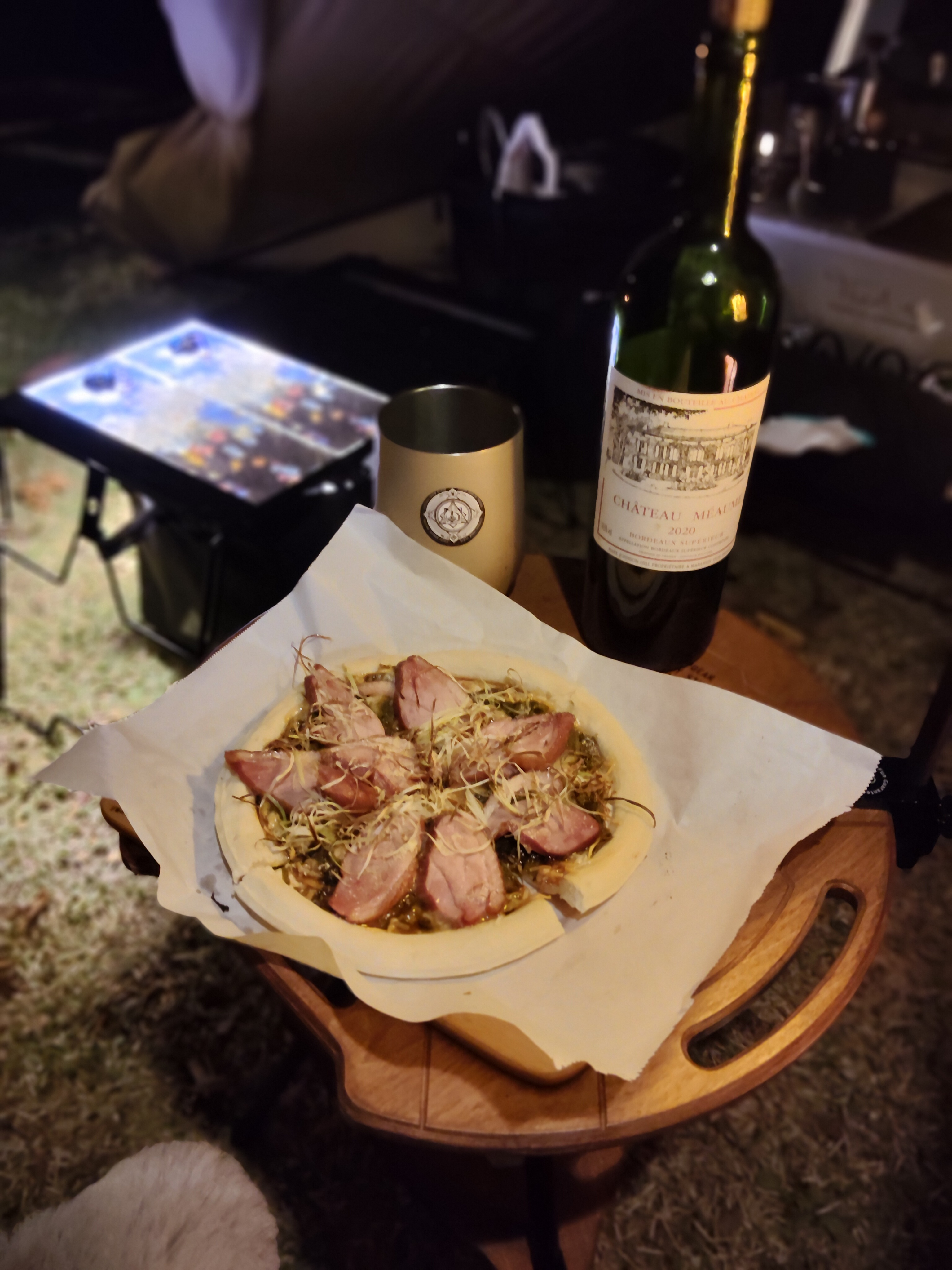 ストーブ釜で焼いたオリジナル和ピザ😄
