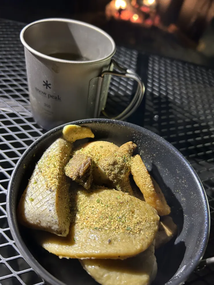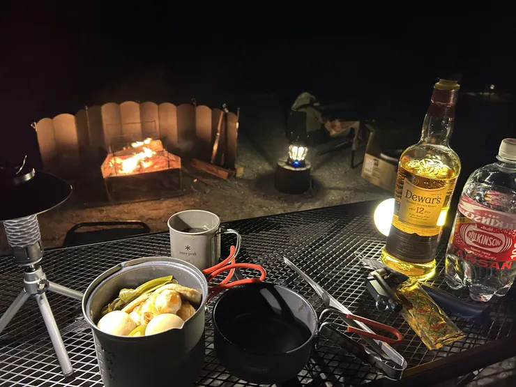 2月の夜は氷点下での温まるキャンプメシ