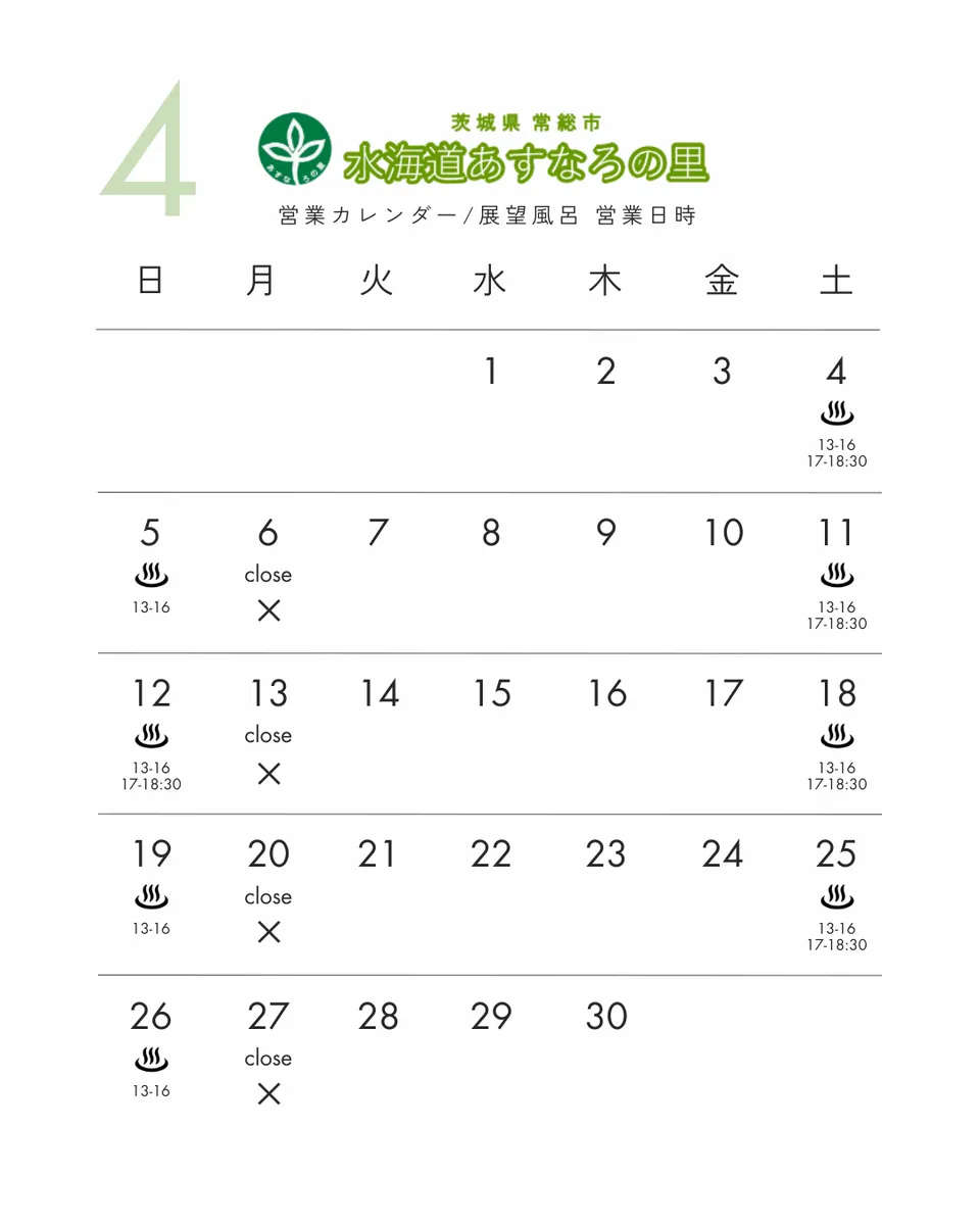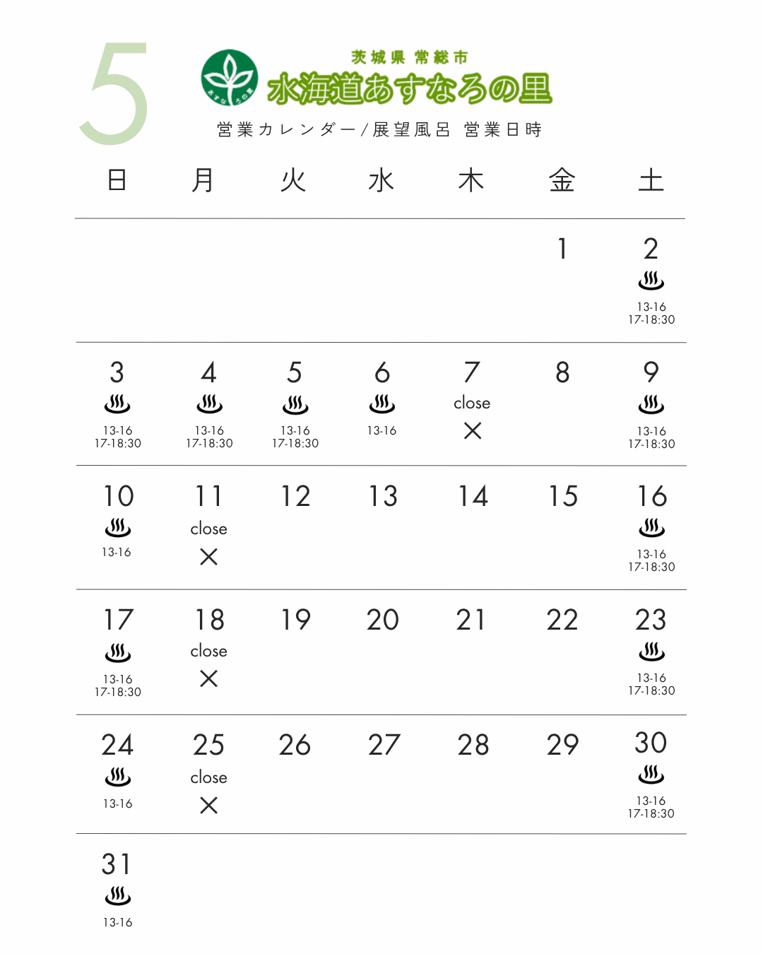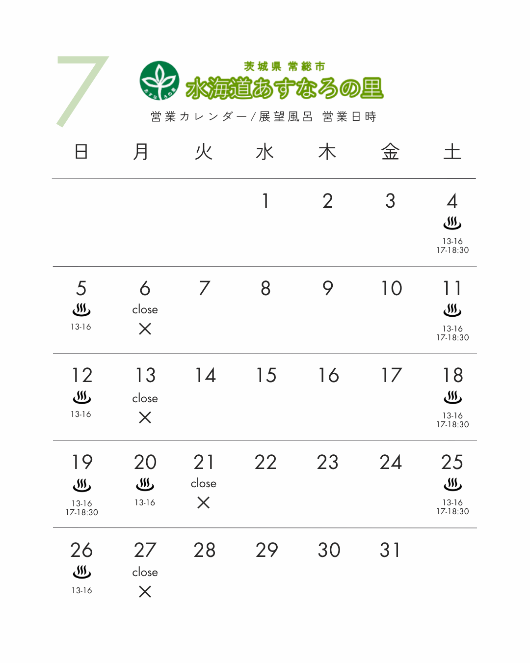 空白はお風呂営業なしとなります。(あすなろの里は営業)