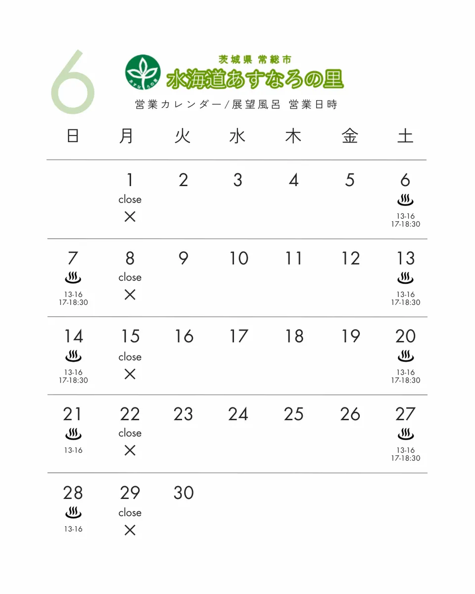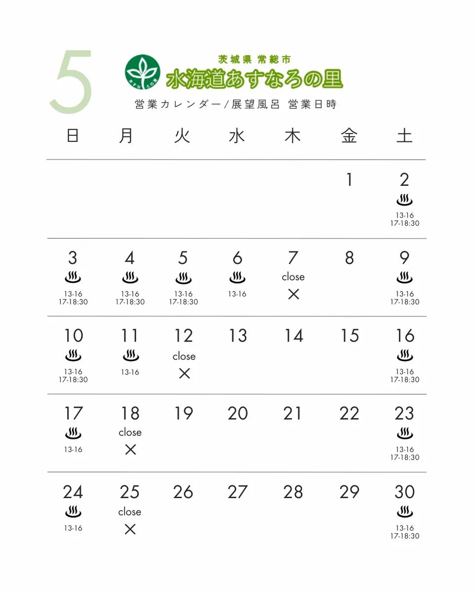 あすなろの里営業カレンダー/展望風呂営業時間について