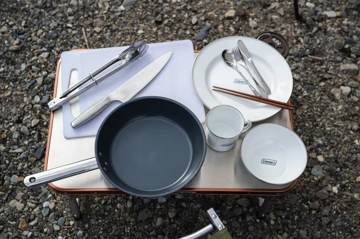 ●防風カセットコンロ/ガス付き、フライパン、包丁、まな板、トング(食材用)