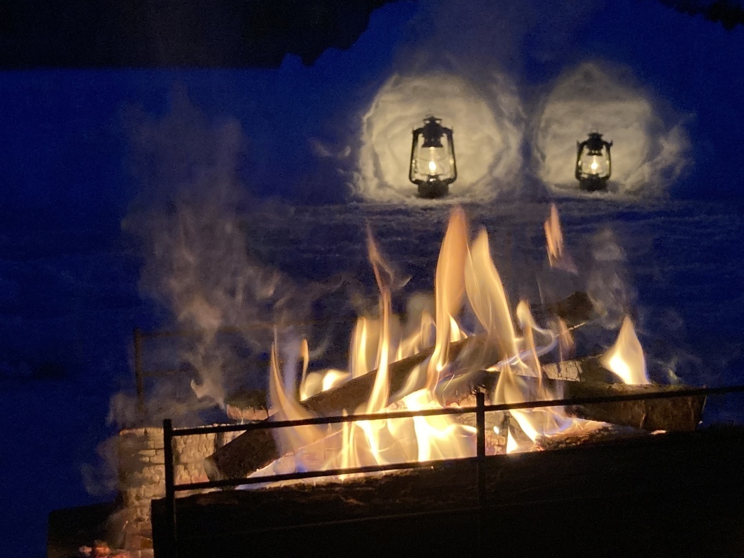ゆらゆらと燃える炎の奥には、かまくらの中にランタンの灯りが!
