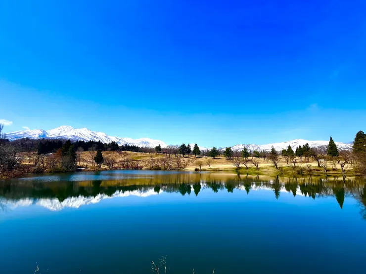 雪の残る山の稜線とのコントラストもバッチリ🤠
