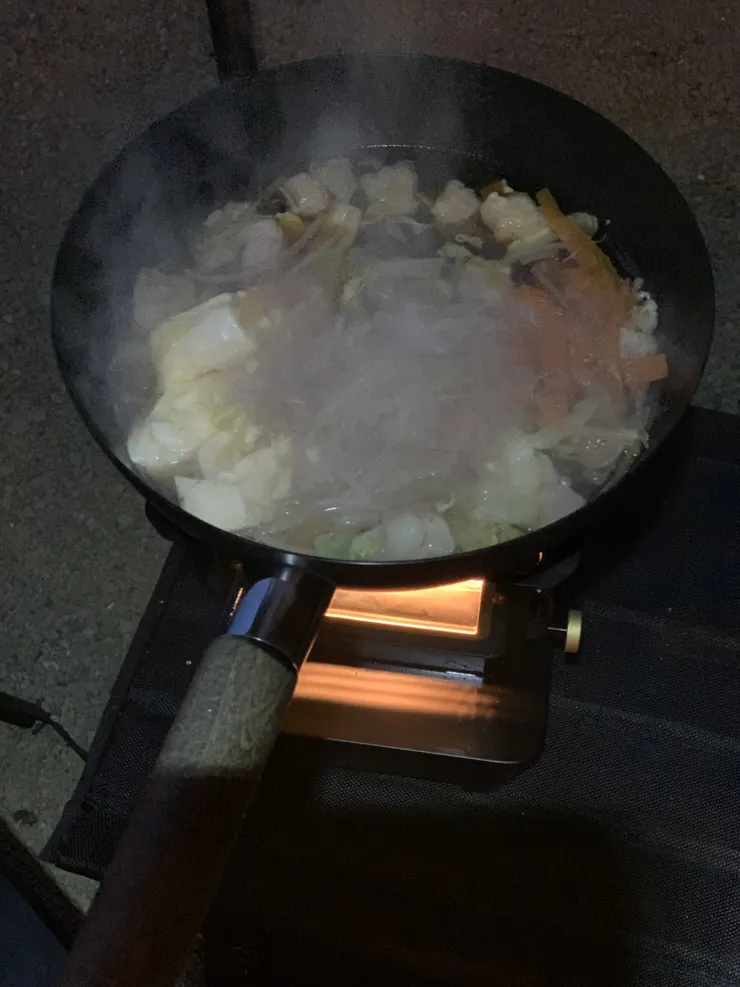 撤収時間が早く、明日の天気の心配もあったので薪ストーブはまたしても出番なしで、焚き火でのお楽しみとなりました。