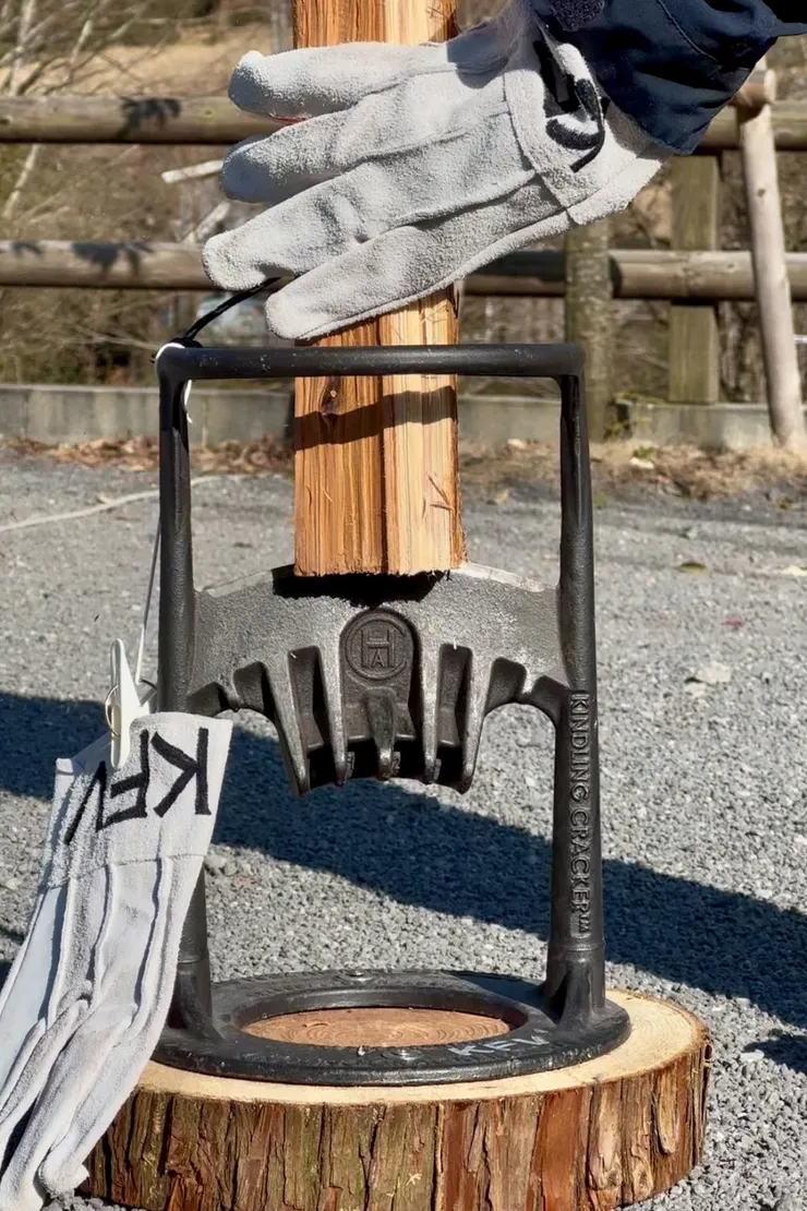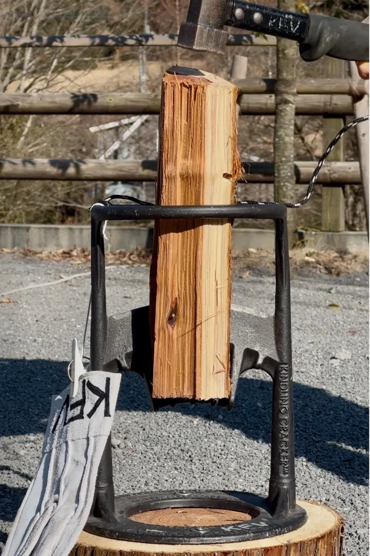 薪割りがもっと楽しく、安全に体験できる「キンドリングクラッカー」を管理棟裏に設置しました✨