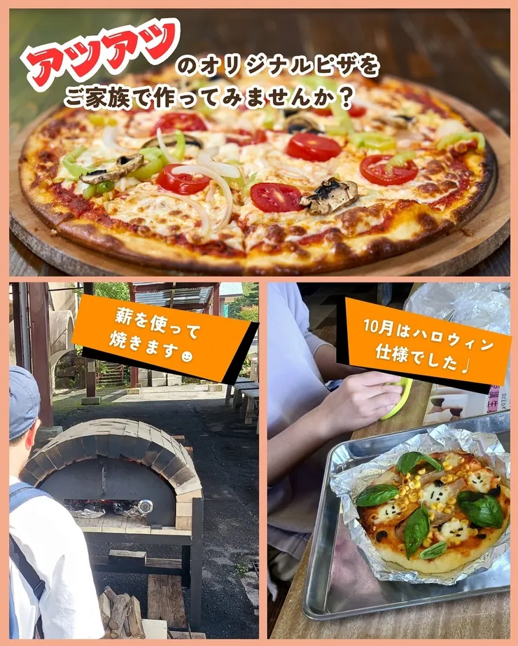 地元の米粉を使って、もちもちのピザ生地から作ります!自分だけのオリジナルピザを焼いて、大自然の中で味わいませんか?