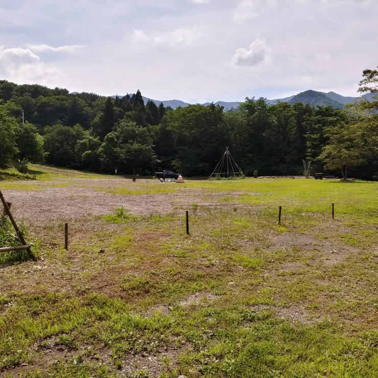 フリーサイトは広いけど…車両乗り入れ不可、土なので雨降ったら水捌け悪そう。
