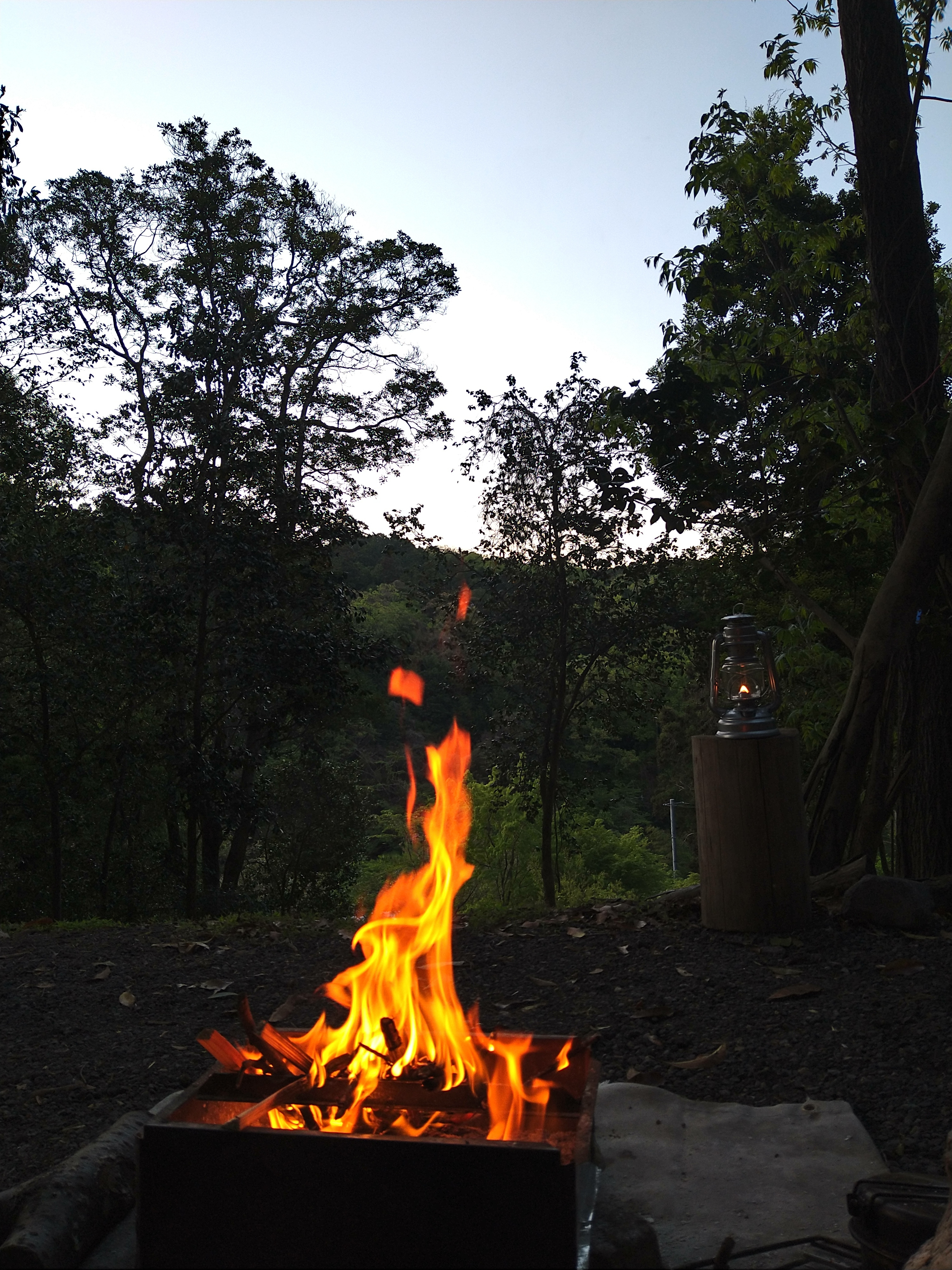日暮からの本格焚き火タイムですかね🔥ワクワク♪