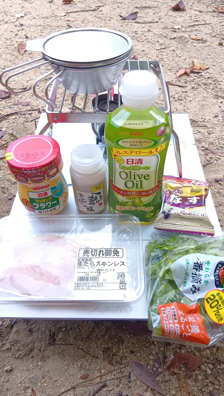 ますは米を炊いて……固形燃料の補充してなかった。