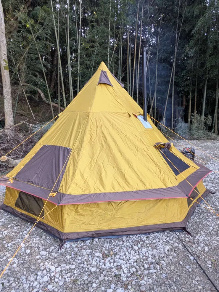 ワンポールテントに薪ストーブをイン…したがいらないくらいあったかい。ふもとっぱら行く装備のまま行き先を南房総に変えたからオーバースペックでした。また現在進行で整備されてる新しいキャンプ場で係の人にもとても良くしてもらい、人見知りで吠えてしまううちの犬にも配慮してくれて快適に過ごせるようにしてくれました。