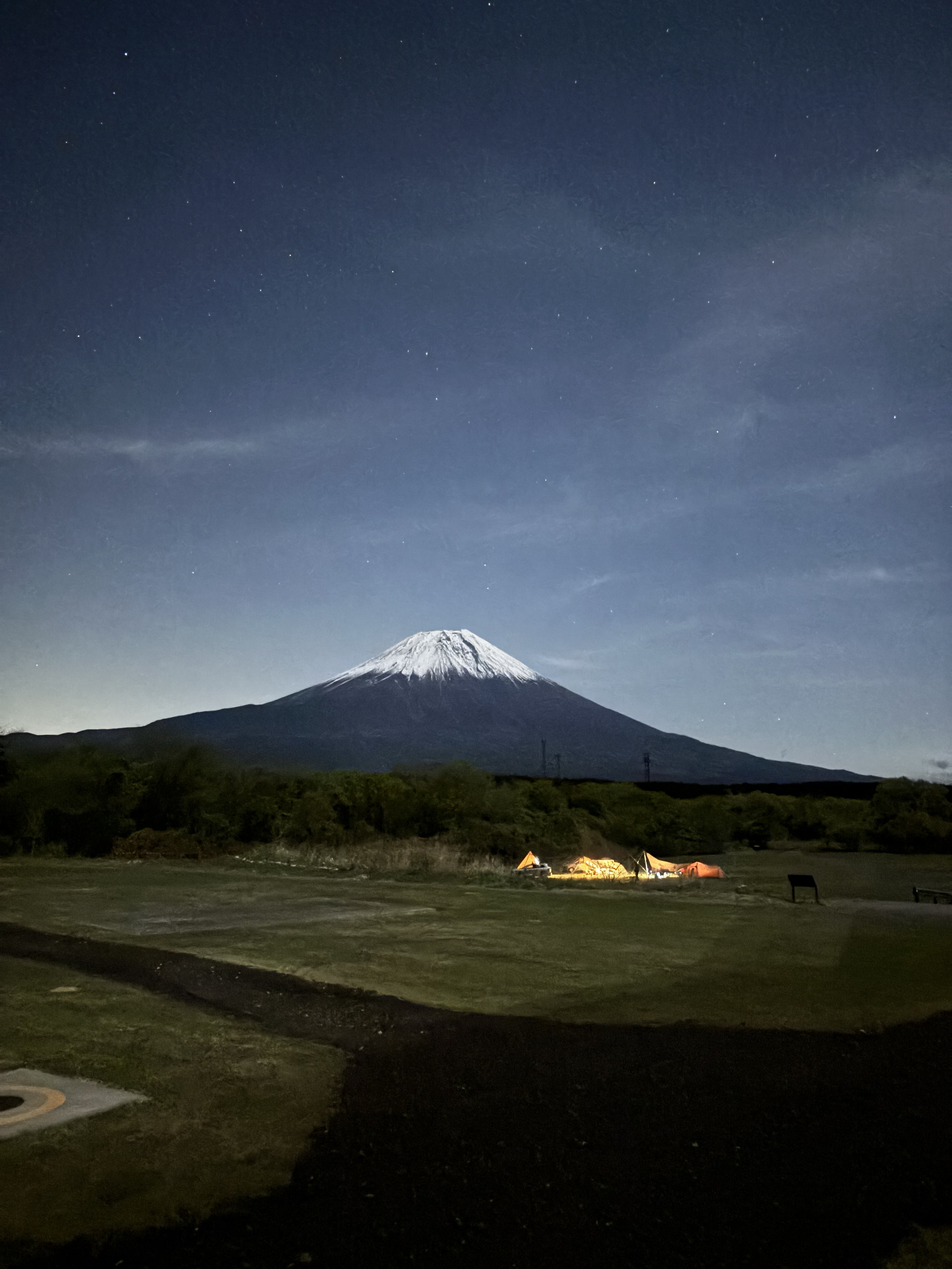 トップ > 春とGWの思い出フォトコン2026 > 月明かりに照らされた富士山 maeaki0424 2026/04/29 08:22 月明かりに照らされた富士山 予想外の突風でテント設営を諦めた後、強風が雲を吹き飛ばし、澄んだ空気の中の月明かりが照らし出した富士山 静岡 | 朝霧Camp Base そらいろ 富士山 朝霧campbaseそらいろ いいね 共有する 共有する X facebook LINE リンクをコピー 静岡 | 朝霧Camp Base そらいろ そらいろは標高800mに位置し、夏は昼間も涼しく、朝晩は22℃?23℃と日中も夜間も快適に過ごしていただけます 東海 > 静岡県 > 御殿場・富士 高原 フリーサイト / 区画サイト 芝 通年営業 団体・貸切OK / 携帯電話OK / ペットOK / 手ぶらキャンプ・レンタル アサギリキャンプベースソライロ 詳細を見る コメントする 0 件の返信 (新着順)