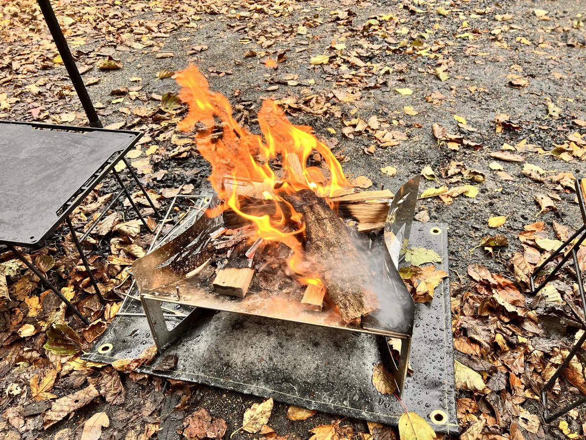 焚き火台は雨降ると思ってなかったので